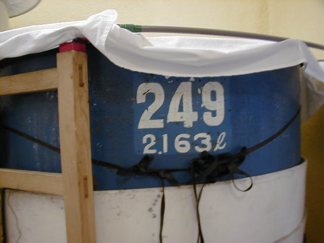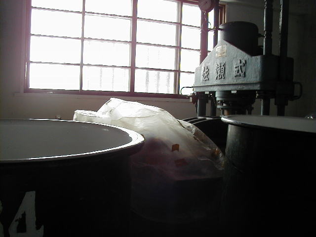 開放サーマルタンク(写真1,写真2)の脇に少し古い249号タンク(2.163l)(写真)が置いてある。このタンクで造った酒はよく入賞するので,縁起をかついで使うことにしたそうだ。