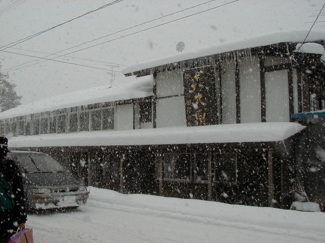 大雪が積もっており、さらにバンバン降っている。スキーをしない僕は,雪国には数度しか来たことがない。しかもいつも天気がよかったので,こんな大雪は初めてだ。大雪に興奮しているためなのか,厚着のおかげなのか,あまり寒いという感じがない。それにこっちの女子高生は,この雪の中でもスカートに生足である。寒くないのだろうか。