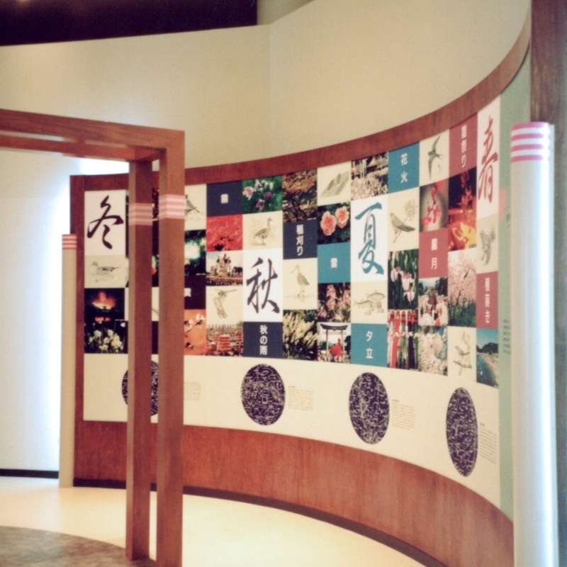 A lot of illustrations such as animals, birds, fish, shellfishes, and insects were used for Headstream Museum of Forest and Water in Kawakami-mura Village Nara.![]() Click on the images. |