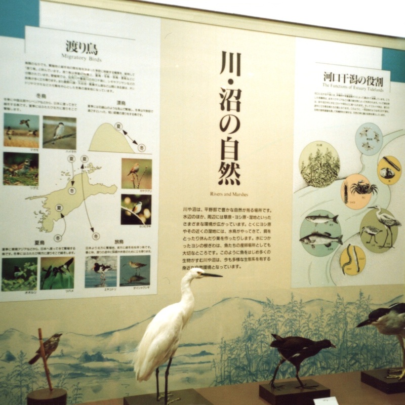 A lot of illustrations such as animals, plants, birds, fish, shellfishes, and extinct animals and plants were used for Shiga Prefectural Lake Biwa Museum.