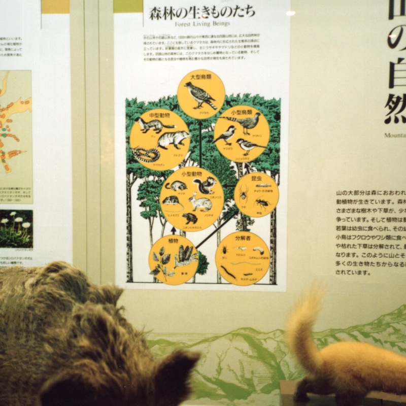 A lot of illustrations such as animals, plants, birds, fish, shellfishes, extinct animals, and Old machinery were used for Ehime Prefectural Science Museum.
