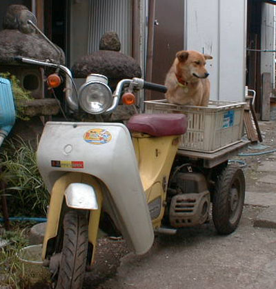 荷台は配達用に改造してあります。今日の荷物は「 ツナ 」(犬の名前)です。