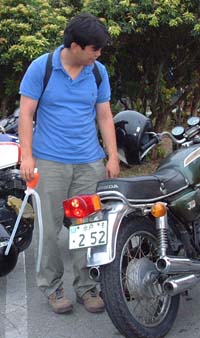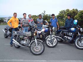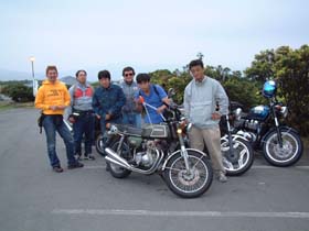 どこだかのサービスエリアでの出発の際。腕を組み、「ま〜だ でね〜のかよ〜」と、いうような余裕の表情でバイクにまたがっていましたが、まだ、スタンドを上げていない事を忘れており、そのまま出発。でも、期待を裏切らない稲毛君に、僕と栗ちゃんは笑ってしまい、その声に気づきスタンドを上げ、今回は火花は散りませんでした。 それから、しばらく走り、どこだかの高速料金所出口で「だめだ、調子わり〜」と言いながら、バイクを押して出てきました。路肩に寄せ、稲毛君は額に汗をかき、一生懸命、何十回もキックしました。でも、あまりにも かかる気配がないので、おかしいと思いよく見てみると、キーがOFFになっていました。気を取り直し、キーをONにし、やはり額に汗をかき、一生懸命、何十回もキックしました。しかし、やはりかからず、おかしいと思いガソリンタンクを覗いてみると、ガソリンが空でした。何かに一生懸命取り組んでいる時の表情と汗は、とても、輝いていましたよ。 その後、吉澤君とガソリンスタンドにシュポシュポを買いに行き、通りすがりの人に指を指されて笑われながら、僕と吉澤君のバイクのタンクからガソリンを移しました。「いったい稲毛君には、何本シュポシュポを買わされるのだろう?」とちょっと心配になってしまいました。 その後も、バイクを降りようとしたらスタンドが下りておらず隣にいた僕にバイクと一緒にもたれかかってきたり、休憩後エンジンをかけようと汗をかきかき何回もキックしたがかからず、よく見てみるとエンジンストップのスイッチがOFFになっていたり、峠道を20kmくらいでわき合い合いと走るギャル車と真剣勝負していたり、この時期でも箱根の山は肌寒い為みんな長袖やジャンバーを着て走っているのに、半袖でまるで雨の中捨てられた子犬のようにプルプル震えながらも気合で走る稲毛君にはビックリさせられました。 今回も楽しい思い出をありがとう!