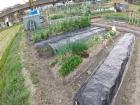 | タマネギ(白)の収穫 | タマネギ(赤)の収穫 | 行燈を掛けて虫よけ | 大きくなったキュウリ | トマトも順調に育つ |