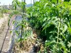早いもので、早や6月である。4月下旬に植えた夏野菜もすっかり大きくなってきた。今年の梅雨は前半は雨が多く、後半は降らないという変則な梅雨であった。おかげで、夏野菜の成長がよく、早く収穫が出来そうである。 追肥も早めに行い、立派に大きくしよう。 初めての夏野菜なので、連作障害を心配したが、よく耕して、堆肥をたっぷり入れたおかげで、連作障害はなんとか避けられた。しかし、昨年途中から借りて作り始めたため、まだ、前の借地人の野菜が幾分残っていた関係で、春野菜の定植する場所がなく、詰め込み過ぎた感がある。また、同じ野菜を沢山植えたこともあり、場所の選定に困った。 来年は、少し考えて、多品種、少量の野菜づくりを考えていこう。 |