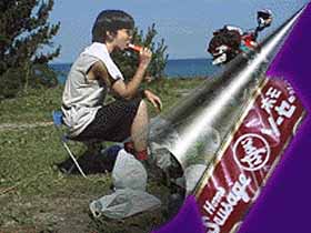 このキャンプ場は林間にあって海も見える(これは翌朝気付いた)所で景色・設備的には良い(ビールは売ってませんけど)のですが、サイトの大半が緩斜面になっていて、テントの設営には少し気を使います。