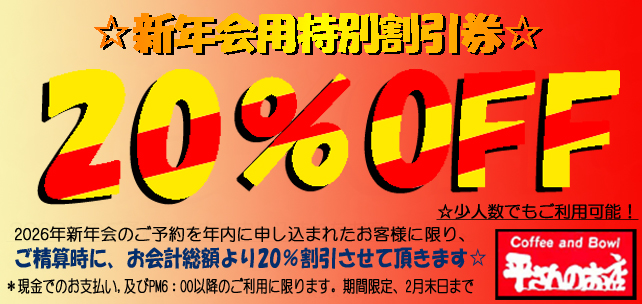 ☆幹事さま必見!忘年会用特別割引クーポン☆