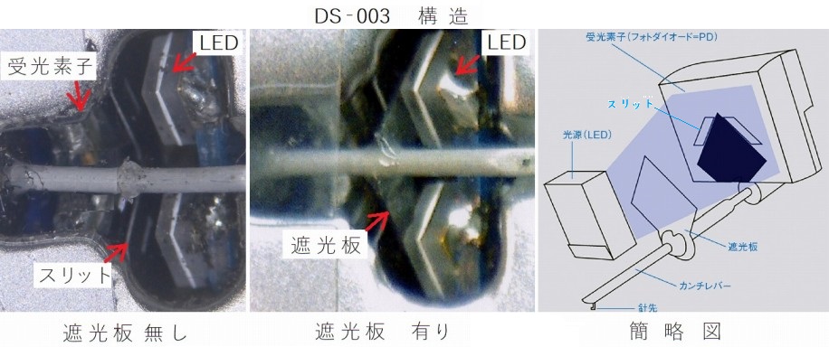 下は構造図、さらに下は実際の写真、遮光板アリ、無し、です。