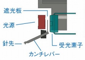 光源がLEDとなり薄くなったので反射鏡無しで直接光を遮光板に当てるようにしてあります。