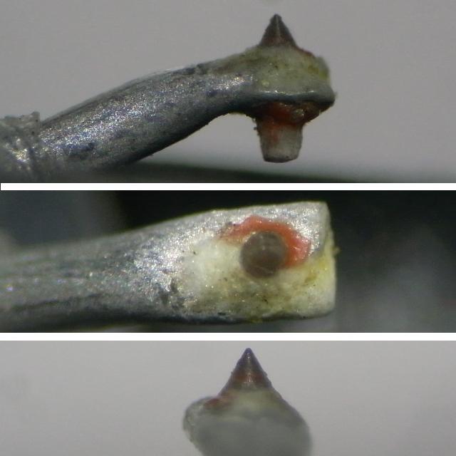 針の周りのカンチレバーの一部が取れています。