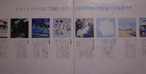 1-03. 積水ハウスの25年間 (その1) 積水ハウスで建てた平らな屋根の家は当時としては珍しく、「あの家は何?」と近所の笑いものになったらしい。当時は家の屋根は三角屋根というのが常識だったから。 でも、うちが積水ハウスで建ててから数年後にお向かいさんが、セキスイハイムで建て替えられた。当時からトラックで運んできたユニットを1日で据付して建てていた。すごいものだと思った。こちらの家も平らな屋根だった。仲間ができた。その後、近所に平らな屋根の家が徐々に増えていった。 当時から積水ハウスはメーターモジュールで、畳、窓等々1m単位で設計されておりひとまわり大きかった。住んでみてすぐ感じたことは、ラジオ放送が聞きにくくなったことだった。木造家屋と違って軽量鉄骨の家だったので、家全体がシールドの役目をしていたためだろう。当時私は、BCLを趣味としていたのでこれには非常に不満で早速屋根にワイヤーアンテナを張った。アンテナ線は天窓から部屋に引き込んだ。その後いろいろなアンテナを張るようになって天窓にケーブルの束が通るようになり、天窓に隙間テープを貼って隙間風をしのいでいた。 家の内装は、和室には壁紙を使ったが他の部屋は合板のみだった。 この合板の壁は手入れが楽だったし、壁をみている限りは25年も住んでいるようには見えなかった。飛び込みでハウスメーカーの人が来たりしたこともあったが、壁を見て「まだ新しいんですね」と言って帰っていったものだった。ただ住み始めた当時は、母が「気分が悪くなることがある」と言ってよく換気をしていた。今ふり返れば「シックハウス」とうものだったのだと思う。 家の外壁は、アルミの板に断熱材と石膏ボードをはりあわせたもののようだ。 (解体したときにちょっと見ただけなので詳しいことはよくわからない) この外壁の手入れは水で洗う程度とのことだったのだが、結局1回も手入れをしなかった。25年間で若干色がくすんだ程度というメンテナンスフリーのすばらしい外壁だった。 セキスイハイムで建てた斜向かいのお宅もうちと似たような外壁だが、20年以上たった今も未だに塗り替え等をしていない。やっぱりアルミ外壁はいいようだ。 家の駆体は軽量鉄骨だった。時々床下にもぐって観察していたが、鉄骨には錆はなく、鉄骨を基礎に固定しているボルトも錆びずに懐中電灯の光にキラキラと反射していた。 「25年住んでもこの駆体なら鉄骨の家は大丈夫。今度建る時も鉄骨の家」という考えが家族で自然と固まっていった・・・と思う。 ![]() 写真は25年前の積水ハウスのカタログ「工事編」より |