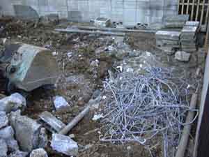 12月12日(その2) 掘りかえされた基礎から鉄骨部分を分別してあります。基礎だけでなく建物本体でも、解体時の廃棄物の分別には注意をはらって作業していました。 |