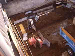 12月23日(その2) ダンプが残土でいっぱいになると。別のダンプがやってきます。丁寧に掘りおこしていきます。 |
