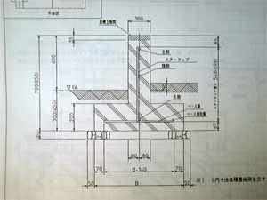 12月26日(その6) 工事の人に基礎配筋マニュアルを見せてもらいました。これは妻側基礎(うちの場合は南側の基礎)の断面図です。設計担当よりもらった基礎図面よりより詳しく書いてあります。 |