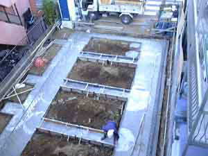 12月28日 コンクリート打設から一晩あけた現場です。年内の作業はここまです。そして現場はまもなく21世紀を迎えます。 |