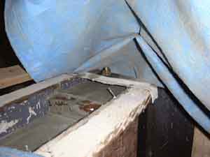 12月27日(その4) シートをめくってみたらアンカーボルトが見えるところがありました。ボルトが動かないように型枠に固定されて、そのまわりにコンクリートが打たれていました。 |