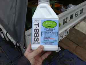 01月13日(その7) 散布した薬剤はこれです。「ハチクサン」893だから「ハチクサン」なのかな(^^ゞ。作業の人にどのくらい効果が持続するのでしょうかと聞いたところ5年くらい年とのことでした。水まわりや配管まわりは蟻が登ってくることがあるので注意したほうがいいとのことでした。 |