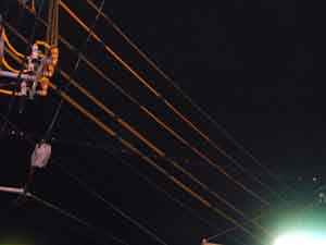 01月14日 現場付近の電線にはカバーがかけられました。今夜の据付にむけて現場の準備は整いました。 |