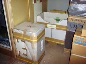 洗面台もユニットの中に入っていました。洗面のボールを受ける台と吊戸です。 (写真0117-1924) |