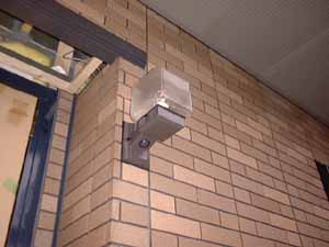 玄関灯を取りつけたところです。取りつけてみてわかったのですが、注文したものとは違うものがついていました。早速ハイム氏に連絡してとりかえてもらうように依頼しました。 (写真20010125-2145) |