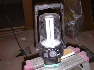 電気工事業者の方が使っていたランタンです。これがとても気に入りました。電動ドライバーのバッテリーで使えるランタンです。屋外作業用にも使えそうですね。 (写真20010128-2278) |