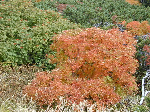 赤いナナカマドと緑のナナカマドです
