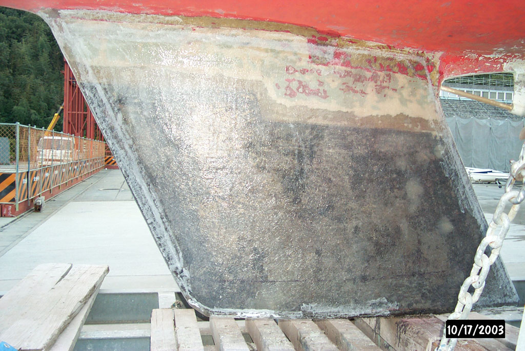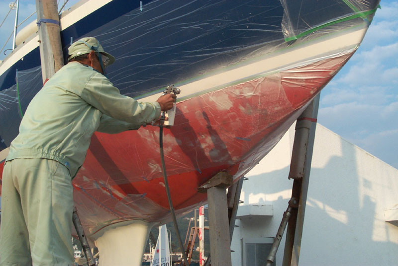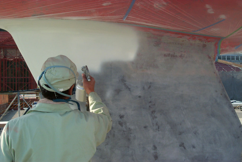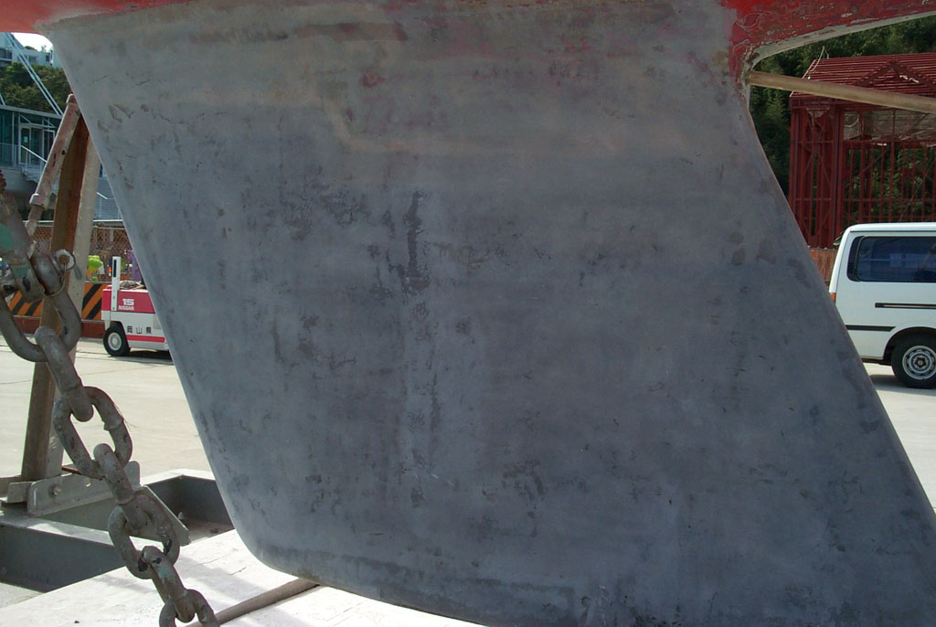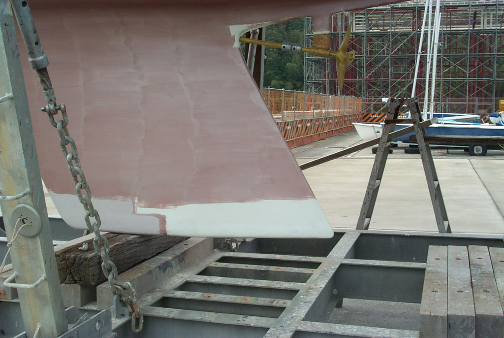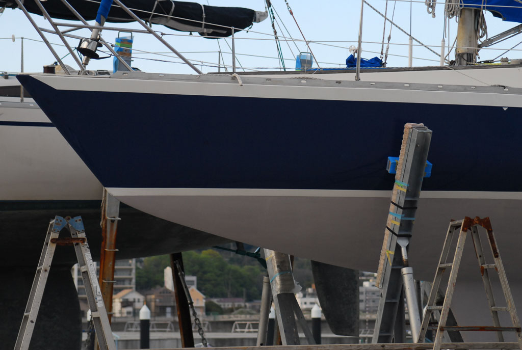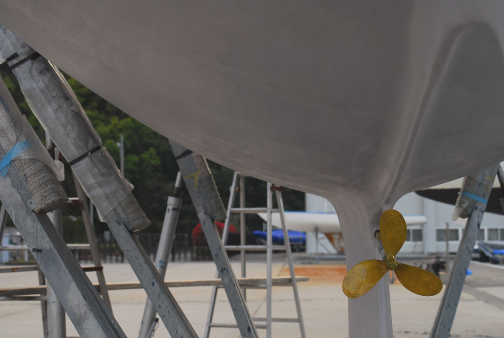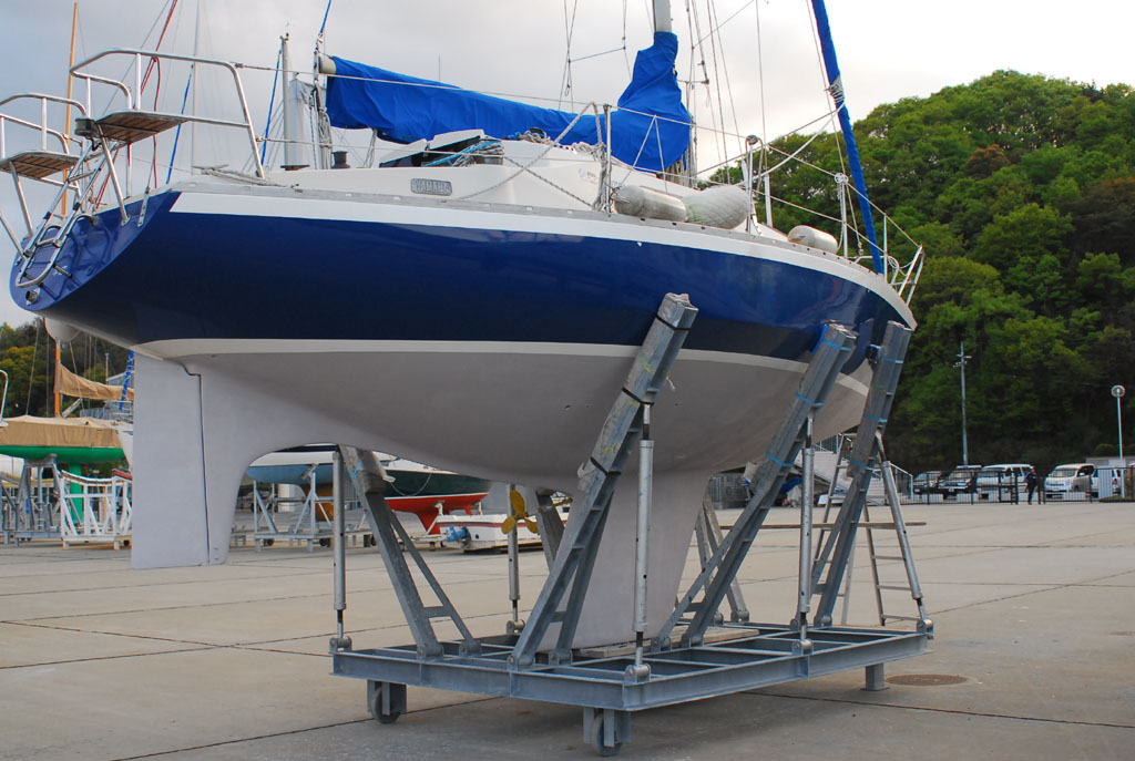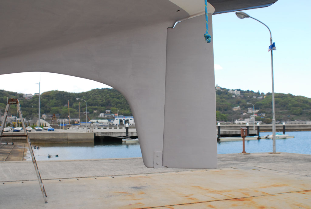 2003年秋、長年の船底塗料を剥がしバラストをFRPで処理、約4週間をかけ徹底メンテナス 製造から30年 スカンピの船体は古さ感じさせない。