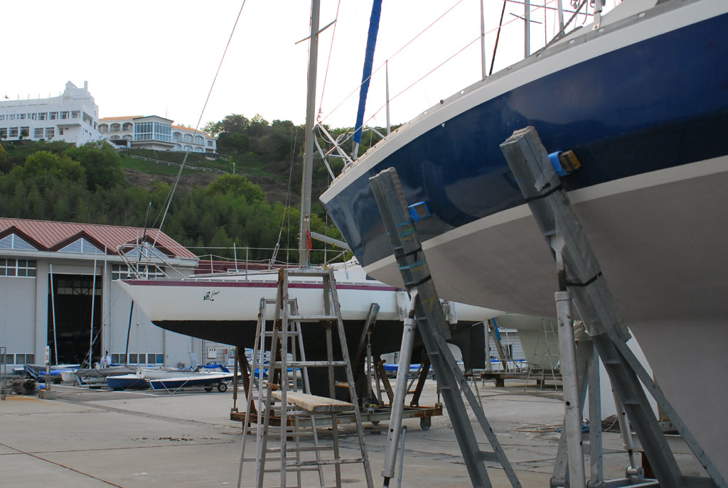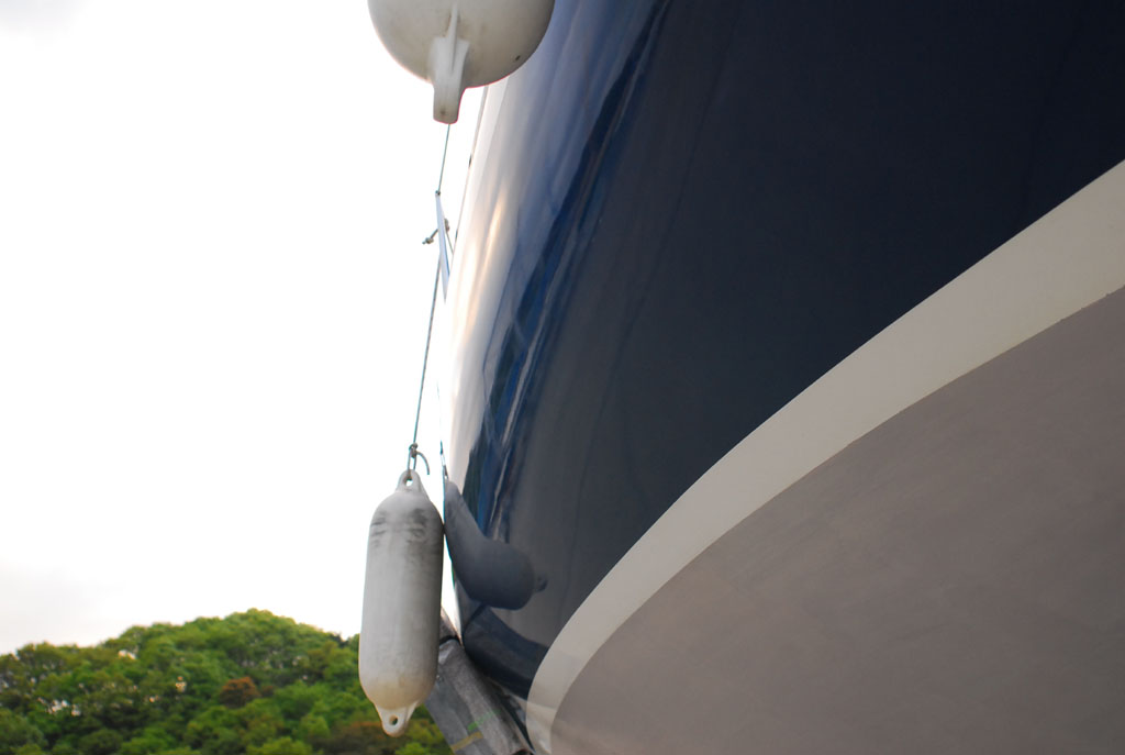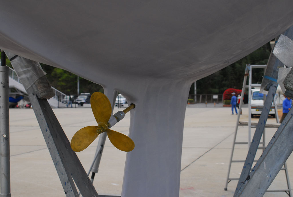 2010年4月18日 上架メンテナンス、プロペラシャフト・船底・ハルのメンテナス ※スカンピのメンテナンスは10ヶ月に一度上架清掃及び船体チェックをしている。