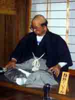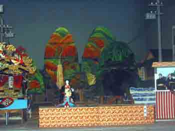 | 山あげ祭りには二回行ったことがあります。確か夏の蒸し暑い頃だったと思います。和紙で作った背景と舞台を町内あちこちで組み立て「常磐津」の唄と芝居の公演。背景の大きな山が山あげの語源かな? きょうは山あげ会館でミニチュアの山あげとロボット仕掛けの勘助じいさんの解説を聞いてきました。 |