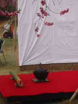 ![]() 桃林の中で、野立て |