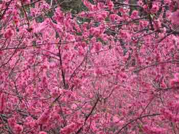 | ここ古河総合公園には3000本の桃の木があります。桜だと多分考えないと思いますが、これだけの桃の木だからかなりの量の収穫あるのでは?また公園だから誰でも食べられるのかな? と貧乏性の私はつい考えてしまいました。 | ![]() |