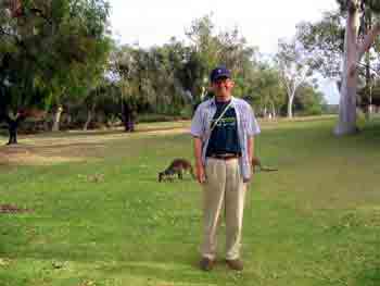 公園の中を奈良公園の鹿のようにカンガルーが生活しています。 但しエサは与えていません。 足元にはふんが一杯。 |