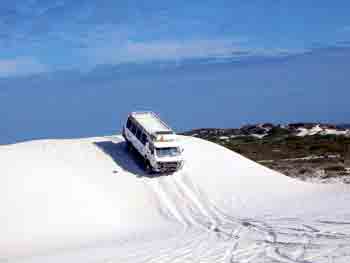 | インド洋に面した長い海岸沿いの砂丘で4WDで走りました。 真っ白な砂の小山をかなりのスピードで走りスリルがありました。 | ![]() |