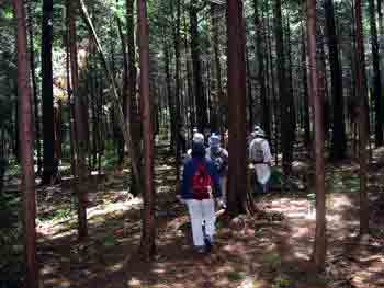 こんな林の中にも道がありました。義経の時代は殆どがこんな道だったんでしょうネ。 馬と馬車が往くだけですから、広い道はいらなかったんです。 |