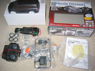 箱の中身です 送信機は、ほぼ完成品 受信機回路基板は完成済み おもに車体を組み立てます |