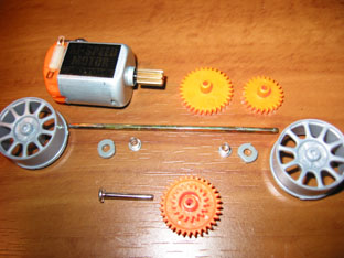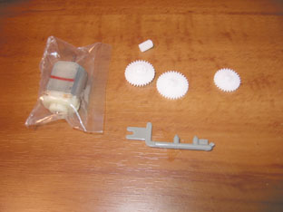 今回使わなかったノーマルモーターと ノーマル用のギアセット (ノーマルモーター用のギアセットは白色) 余ってしまいました。 初めからハイパワー仕様のキットには、 同梱しなくてもいいのにね。 |