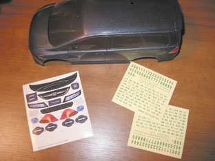 ボディは塗装済みです シール張りをします。 ナンバープレートは、さまざまな地域の 表示が作れるように豊富なシールが付属 しています |