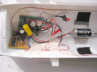 動力モーターはABCホビーの180タイプです アルミ板を使って両面テープで留めてあります スクリュープロペラは模型用の3枚ペラの「小」です スプリングジョイントはPower'sレインボープロダクツ。 |