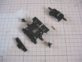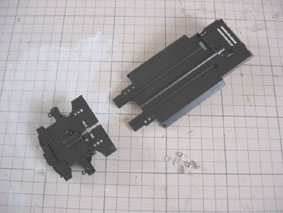 シャシーは前後に2分割です ビスナットで固定します 固定穴は複数あり、 ホイールベースを選んで 組み立てます。 |