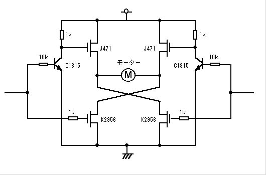| パワーMOSFETは日立製 秋月電子で購入 スペック(絶対最大定格)は 2SJ471がドレイン電流30A 2SK2956がドレイン電流50A VGS=4V時のドレインソースオン抵抗は 2SJ471が60mオーム(MAX) 2SK2956が18mオーム |