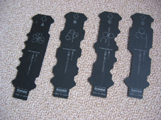 | 精度5/100mmというのが、どこを意味している のでしょう? ギアの部分でしょうか? 単3乾電池2本で2000mも走ります。 USA HASSENFELD BROS社と株式会社バンダイ による技術提携商品との記載があります。 左は付属のプログラムされたカード いまはもう無くなってしまいましたが、 自分で切り取る厚紙のカードも付属して いました。 |