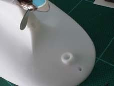 | スターンチューブは船体に接着 セメダイン スーパーXを使用しました。 その他、船体の大きな部品の接着も スーパーXを使いました。 |