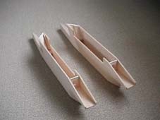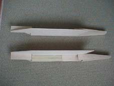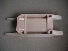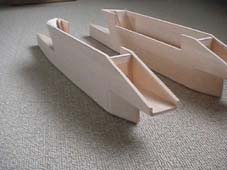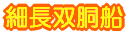 高速走航をめざした細長い胴を持った双胴船 排水型の船体では細長い形の方が高速走航に有利です。 排水型船体に対するものとして滑走型船体を上げることができます 排水型船体が短い全長の場合は、船が作る波の関係で船首が上がってしまい速度が出しにくいのです (船が短いと、船自身が造る波に船首が乗り上げてしまい、スクリューが下を向いてしまいます。 一方、船の長さが長いと、 作り出した次の波に船尾が乗るために、船首が上を向きにくい(スクリューが下を向きにくいのです))