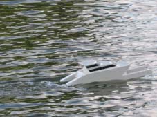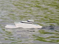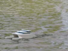 | 水面の木の葉をスクリュープロペラに 巻き込んだ瞬間にジョイントが切れて しまいました。 それでも、モーターとスクリュープロペラ が2つあるおかげで岸にたどりつけました。 |