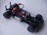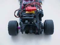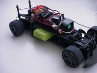 | アンプは双葉のMC230CR モーターとバッテリーのコネクタを 付け替えてあります 受信機はKOのKR200A ステアリングサーボは双葉の 135SHを使いました。 |