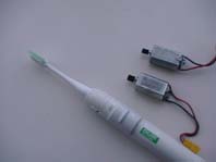 | モーターは電動歯ブラシに 使われていたFF−180SHを 使いました。 キット付属モーターよりも 特に4セル4.8Vでベストマッチング。 しかし、5セル6Vに上げると、モーターがかなり 過熱してしまいます。 |