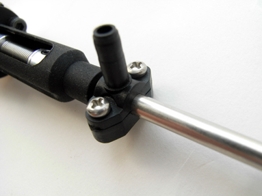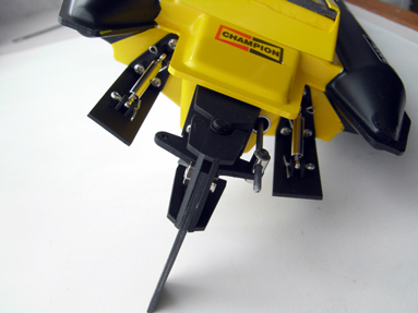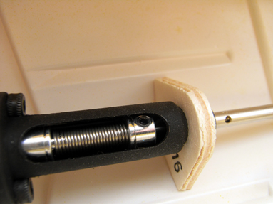 部品16はハウジングストラット カップリングハウジングの支柱です (カップリングハウジングは、モーターとジョイントとスターンチューブを 一直線に保持する黒い樹脂製部品です。) カップリングハウジングに隠れて見えませんがスプリングジョイントの モーター側にスラストベアリングを初めて使いました。 クリッパーの てんちょさんのアイデアです。 面識はありませんが、てんちょさんありがとう 部品8はモーターストラット。 モーターの支柱です。 アトラスアトミックモーターはSEED400モーターよりも 直径が3.5mmほど小さいので、その分大きな部品8の代用品を 余った材料から切り出して使います。 グリースニップルをスターンチューブの側面の穴の位置に ネジ止め固定します。 |