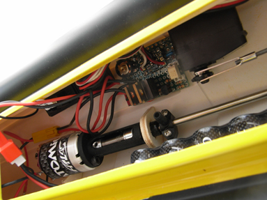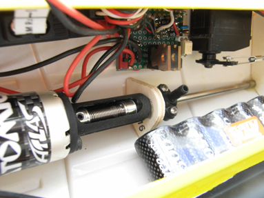 受信機は双葉のR122JE スピードコントローラーは、ブースターアンプ3 サーボモーターは三和の401HS (12分の1電動カーの時代に使用していたサーボモーターです) アンテナはレッドロケットの時と同じです。 やはり受信機のリードアンテナを短く切りたくなかったので パイプ式アンテナを作りました。レッドロケットの時と同じ作りです |
