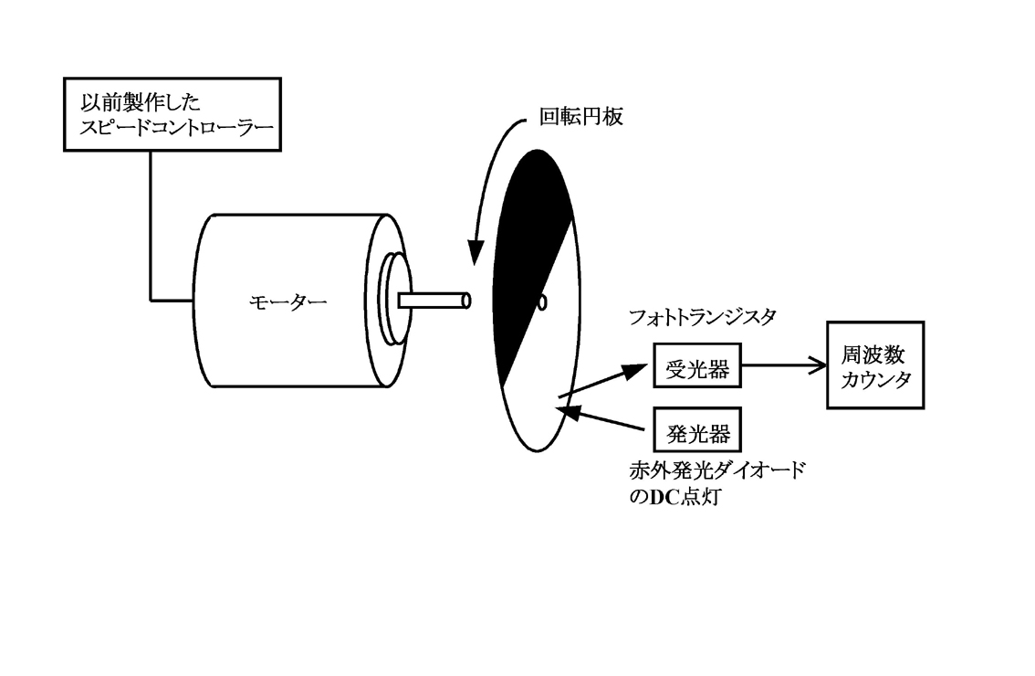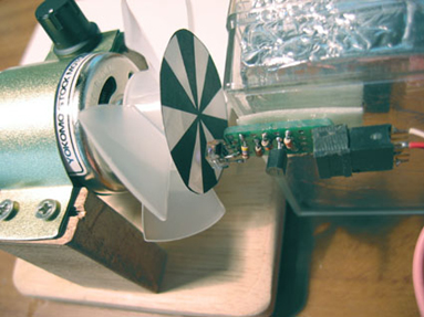 モーター軸には白黒に塗分けられた反射用の円板を取り付けて