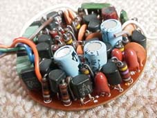 TP-101の内部 左側に並んでいるのがモーター駆動のパワートランジスタ 右奥が高周波回路、 そして中央部がダイオードとトランジスタで構成された論理回路のようです すばらしすぎる